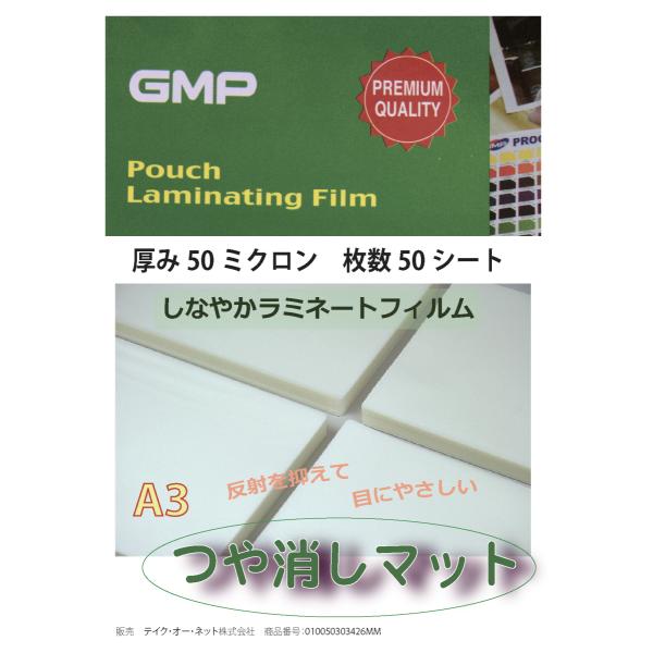しなやかラミネートフィルム艶消しマット A3サイズ50ミクロン50枚